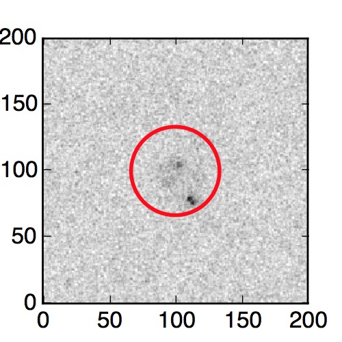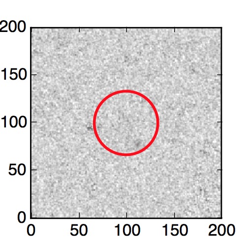 The red circle in the various panels is 1" in radius. The images are 6"x6".