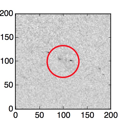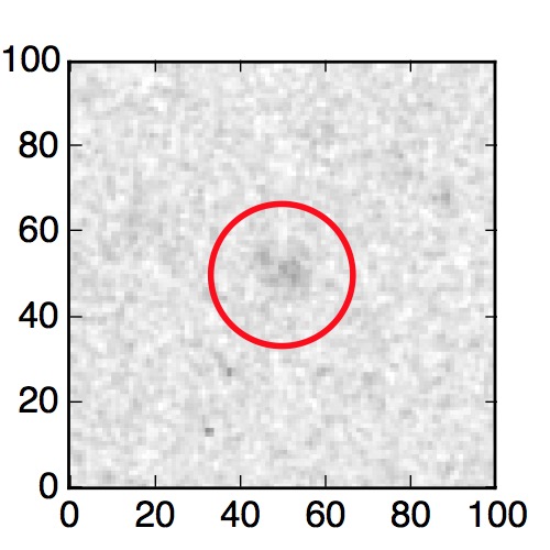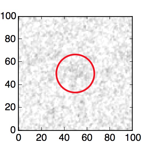 The red circle in the various panels is 1" in radius. The images are 6"x6".
