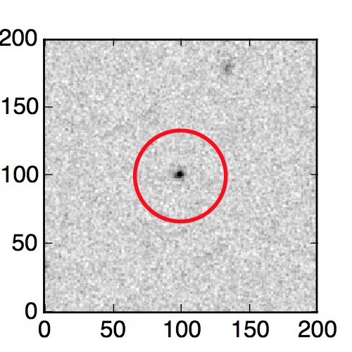 The red circle in the various panels is 1" in radius. The images are 6"x6".
