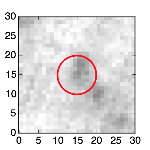 The red circle in the various panels is 1" in radius. The images are 6"x6".