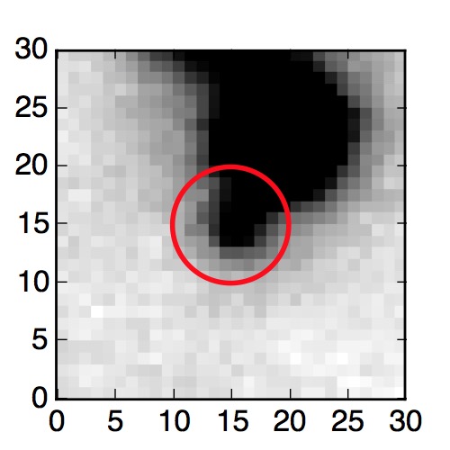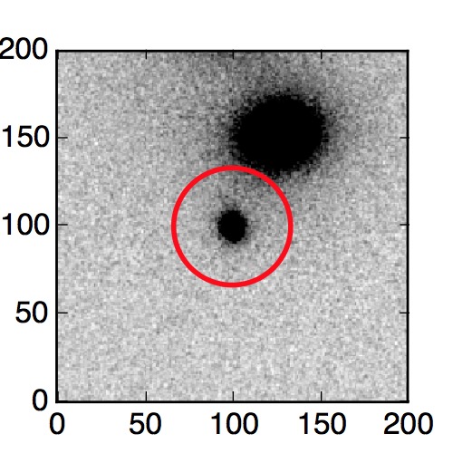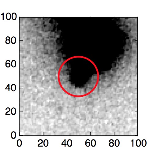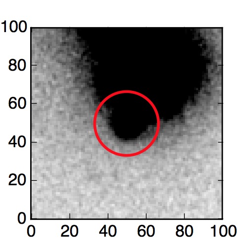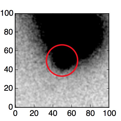 The red circle in the various panels is 1" in radius. The images are 6"x6".