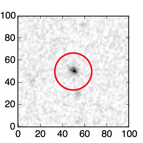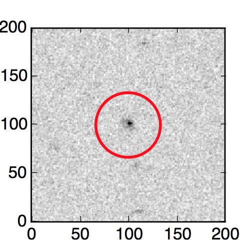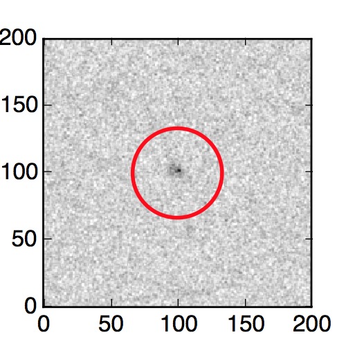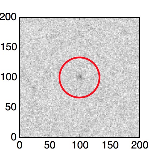 The red circle in the various panels is 1" in radius. The images are 6"x6".