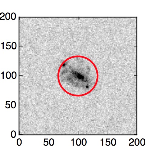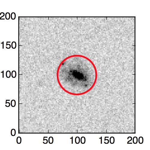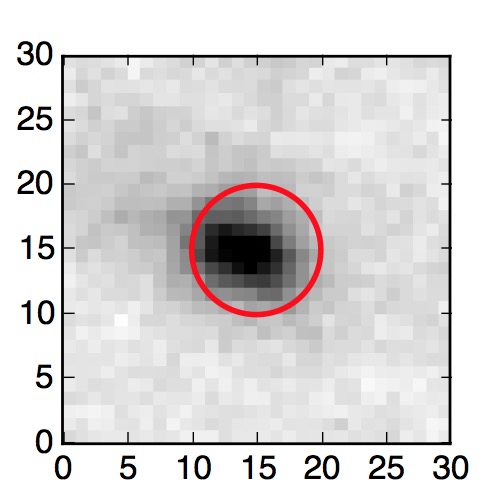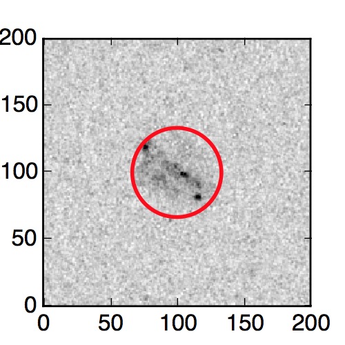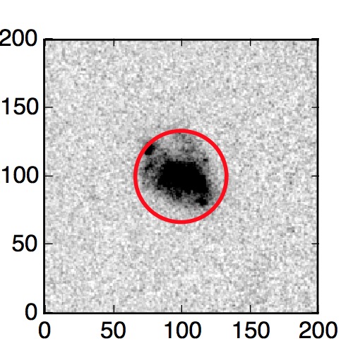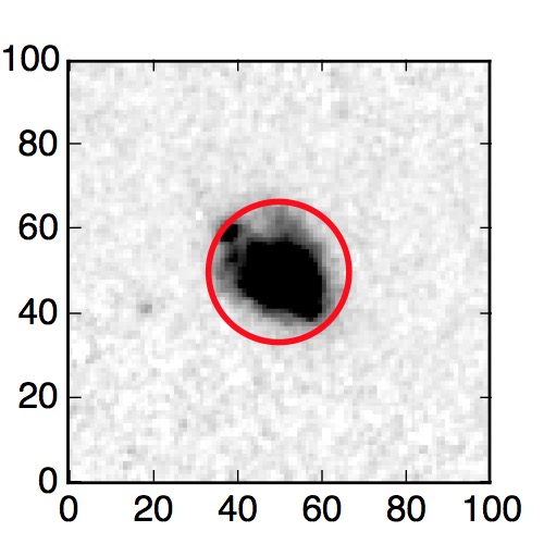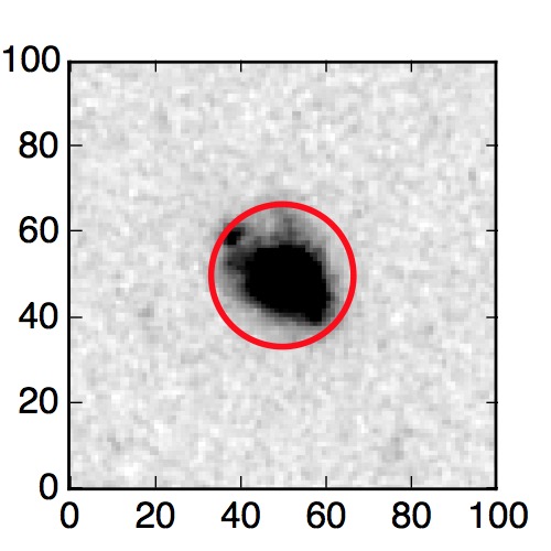 The red circle in the various panels is 1" in radius. The images are 6"x6".