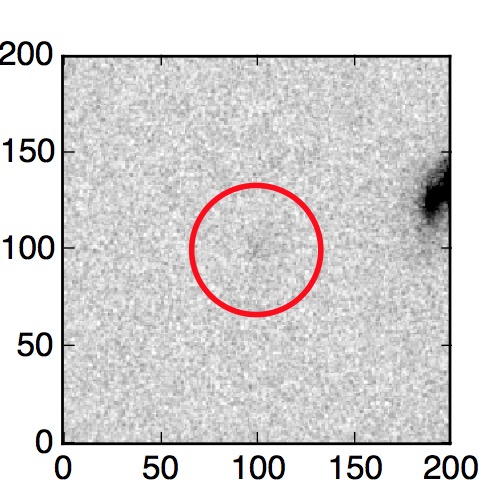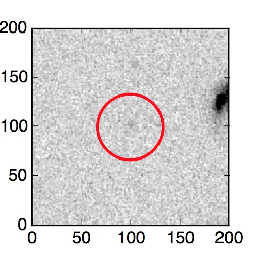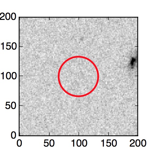 The red circle in the various panels is 1" in radius. The images are 6"x6".