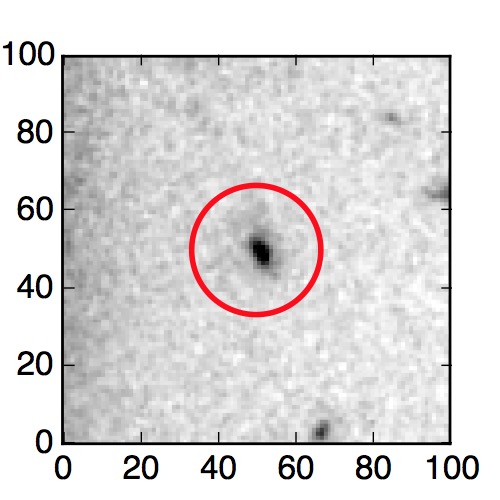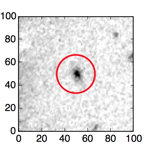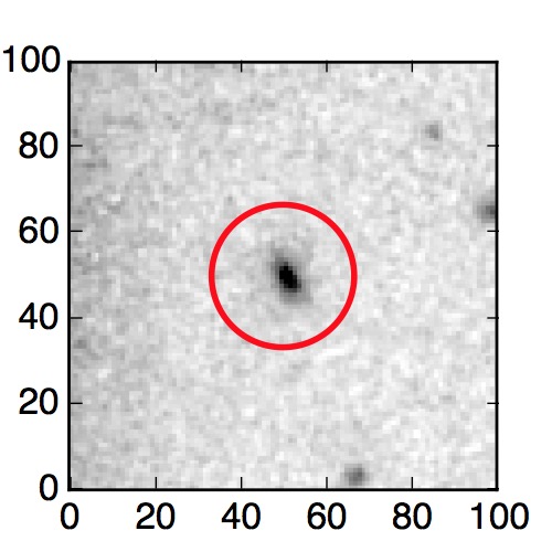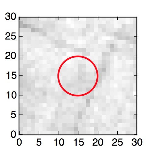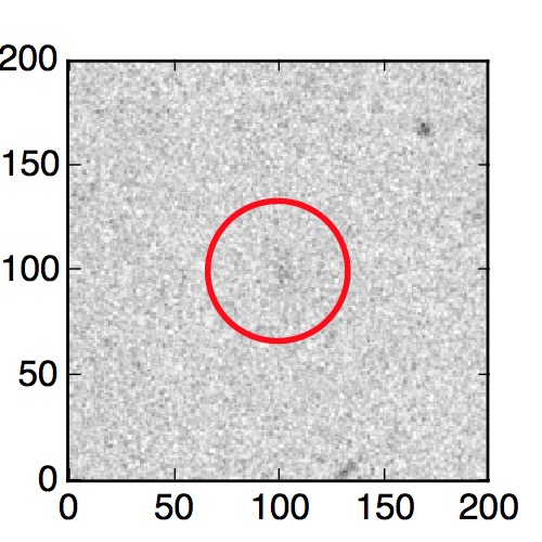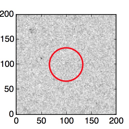 The red circle in the various panels is 1" in radius. The images are 6"x6".