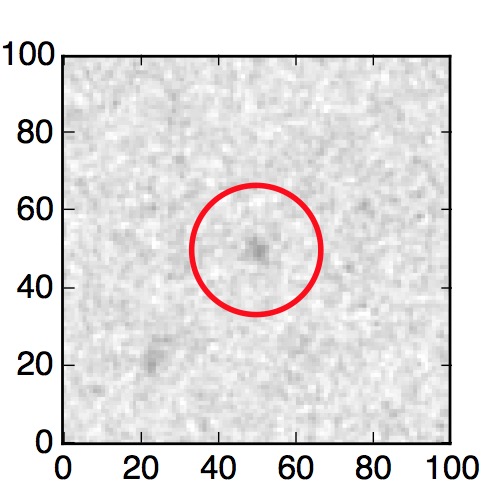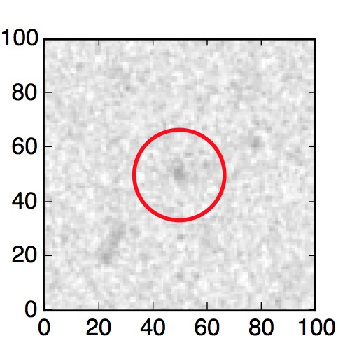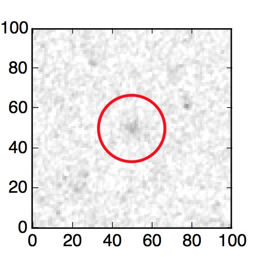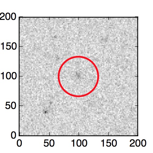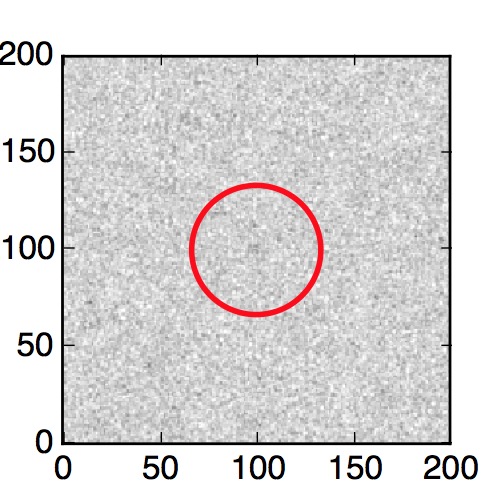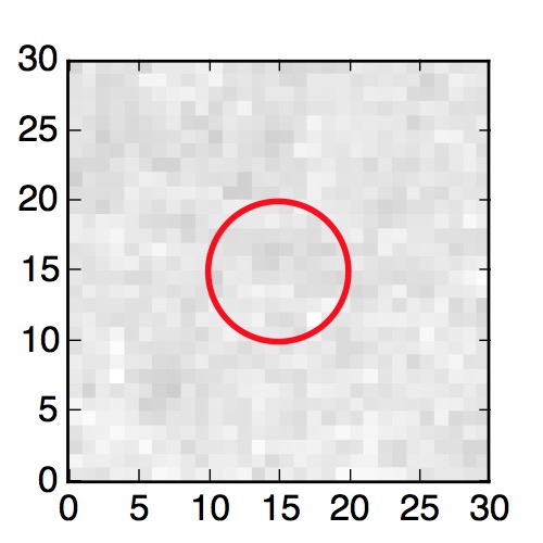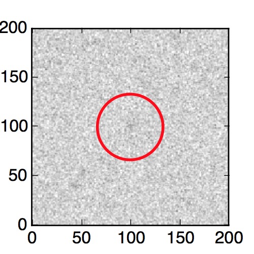 The red circle in the various panels is 1" in radius. The images are 6"x6".