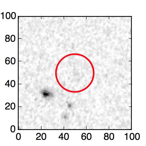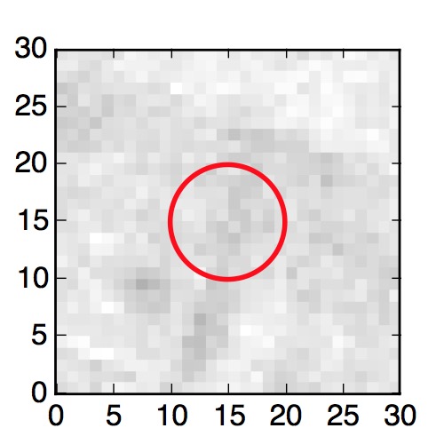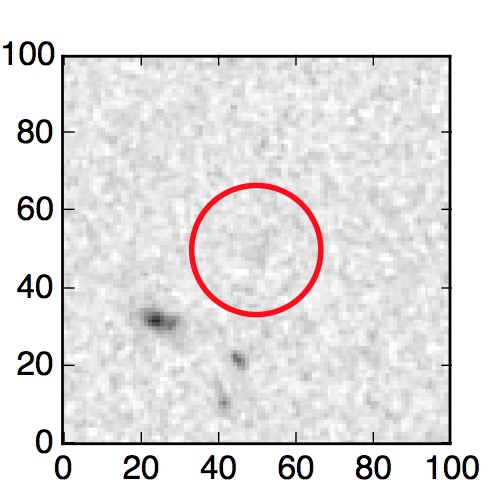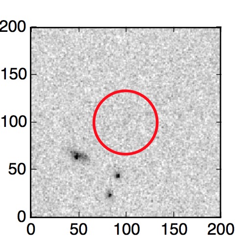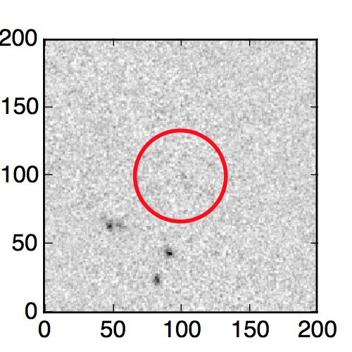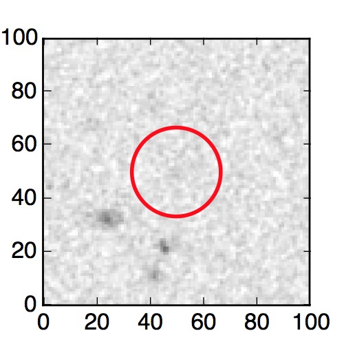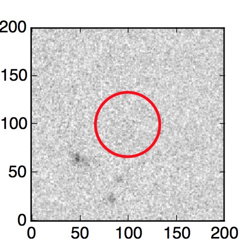 The red circle in the various panels is 1" in radius. The images are 6"x6".
