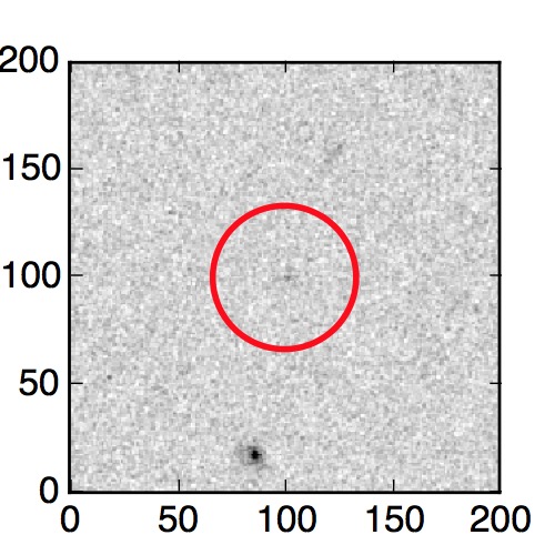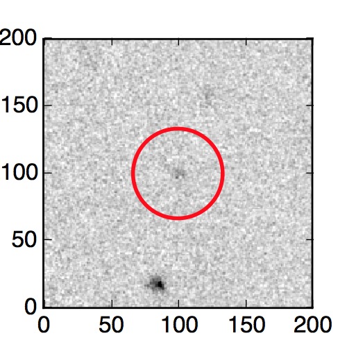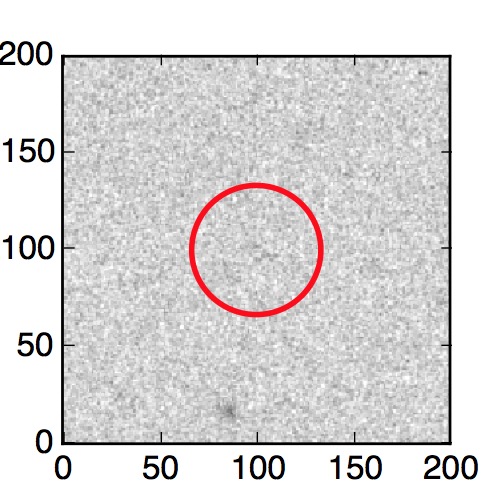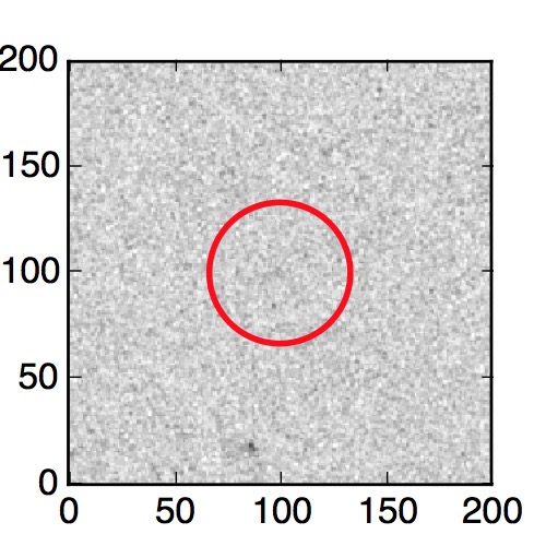 The red circle in the various panels is 1" in radius. The images are 6"x6".