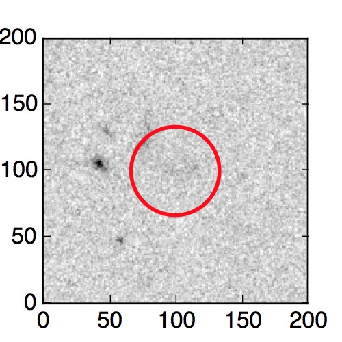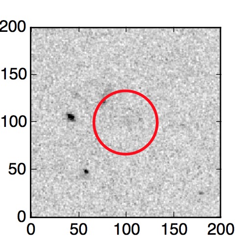 The red circle in the various panels is 1" in radius. The images are 6"x6".