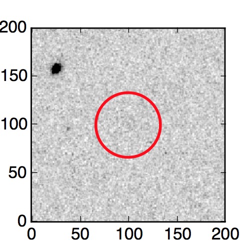 The red circle in the various panels is 1" in radius. The images are 6"x6".