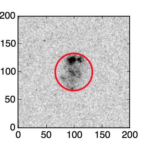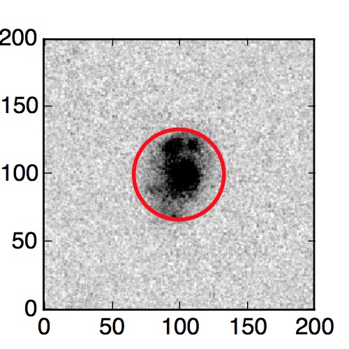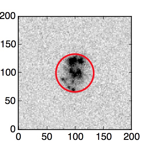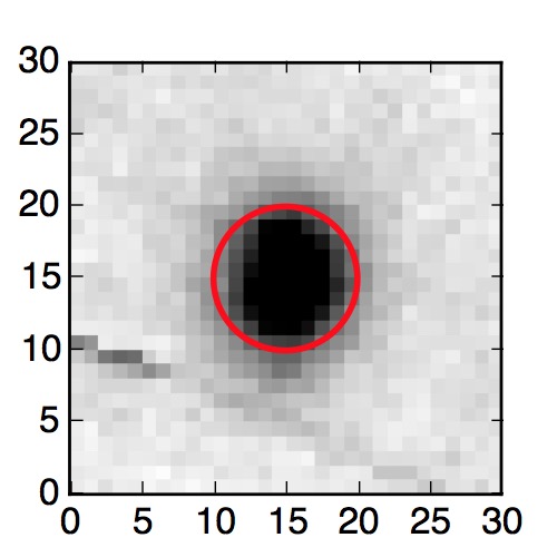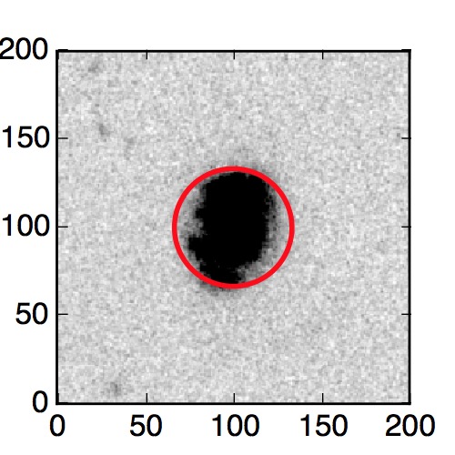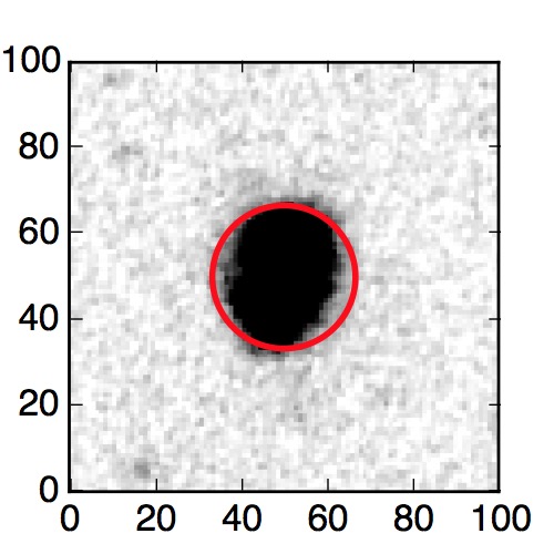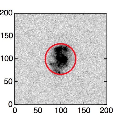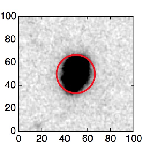 The red circle in the various panels is 1" in radius. The images are 6"x6".
