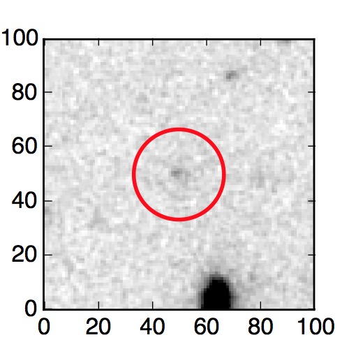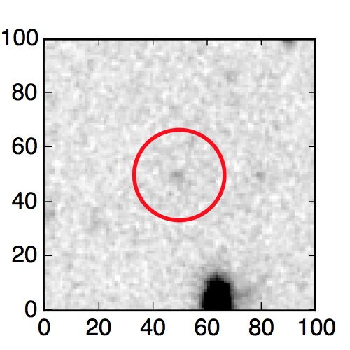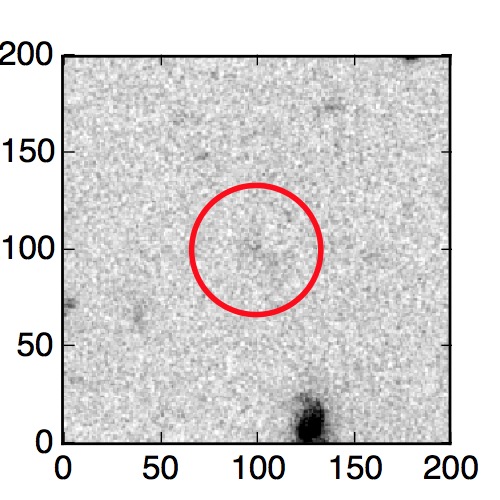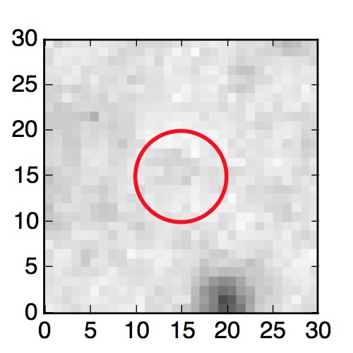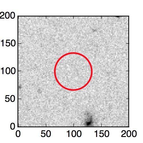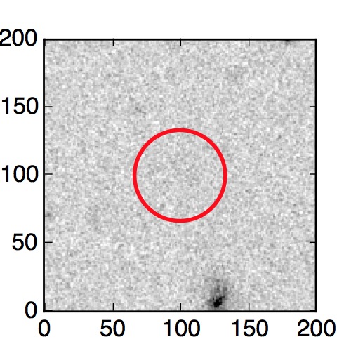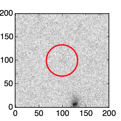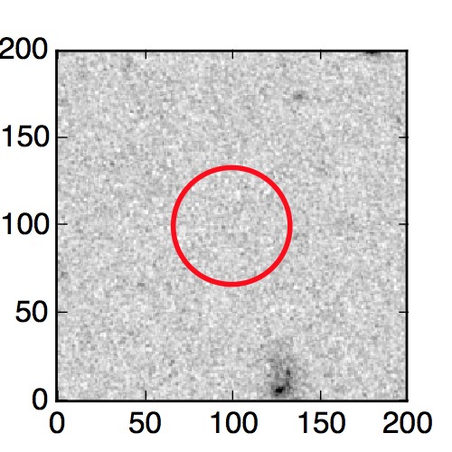 The red circle in the various panels is 1" in radius. The images are 6"x6".