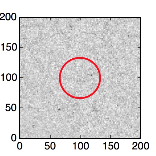 The red circle in the various panels is 1" in radius. The images are 6"x6".