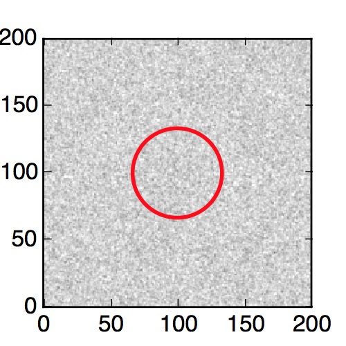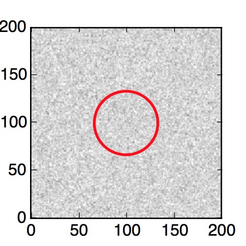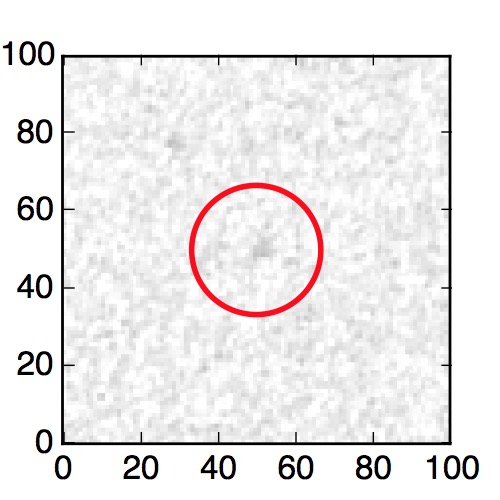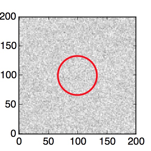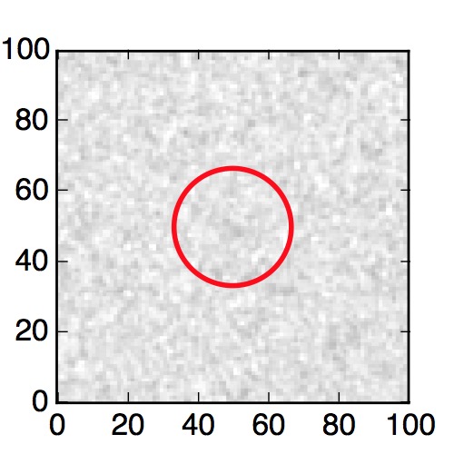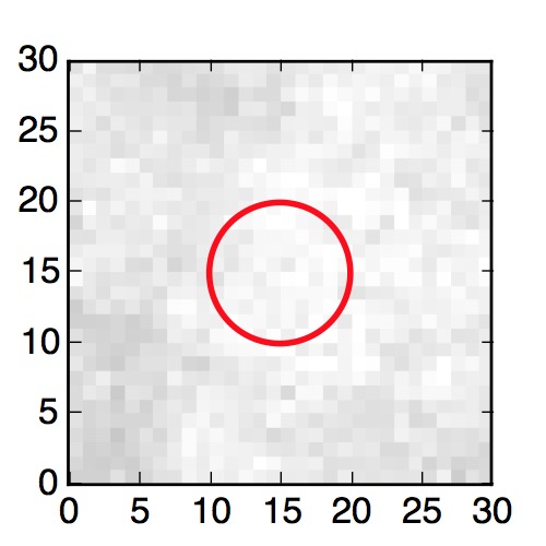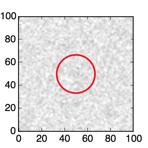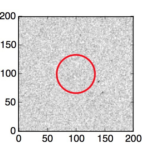 The red circle in the various panels is 1" in radius. The images are 6"x6".