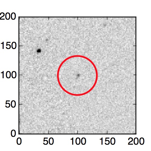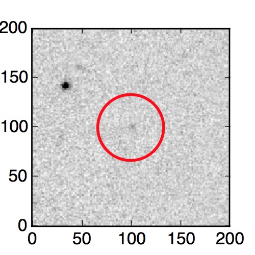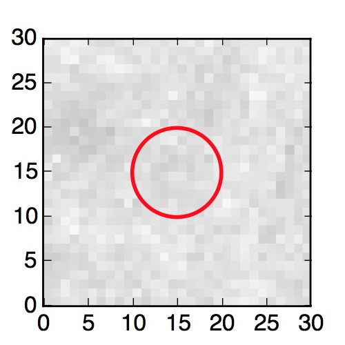 The red circle in the various panels is 1" in radius. The images are 6"x6".