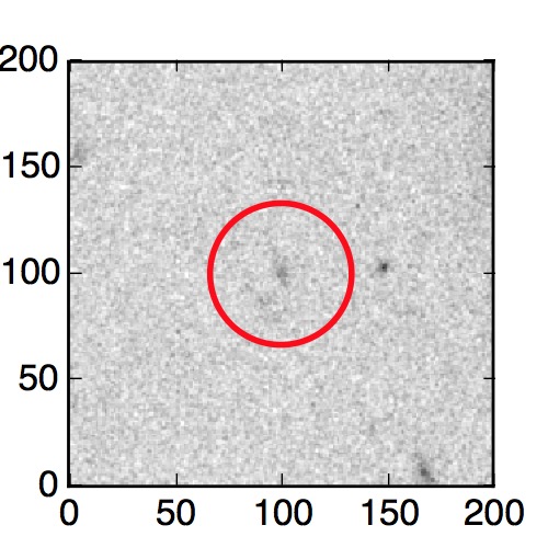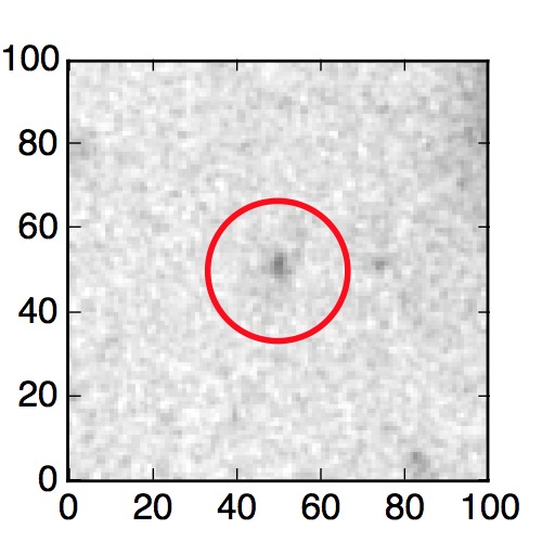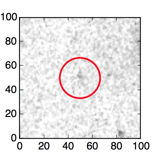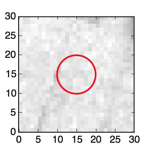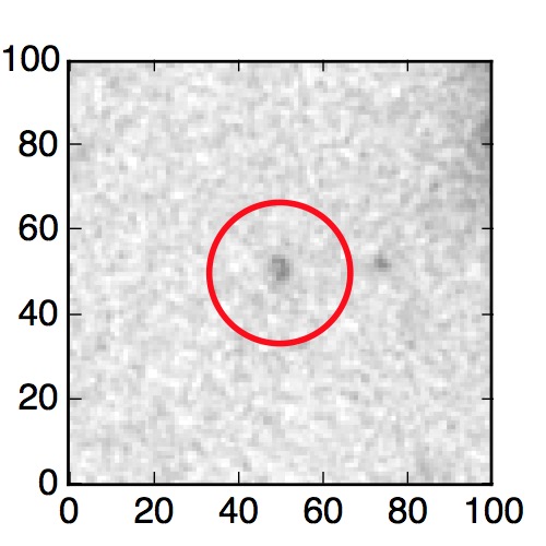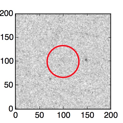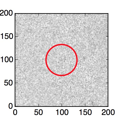 The red circle in the various panels is 1" in radius. The images are 6"x6".