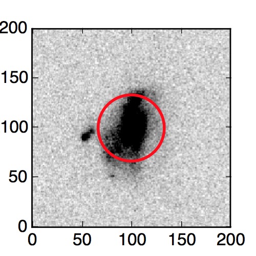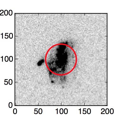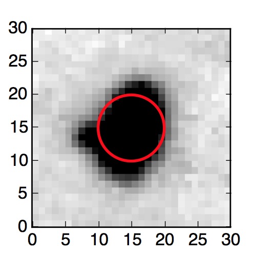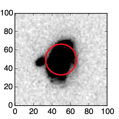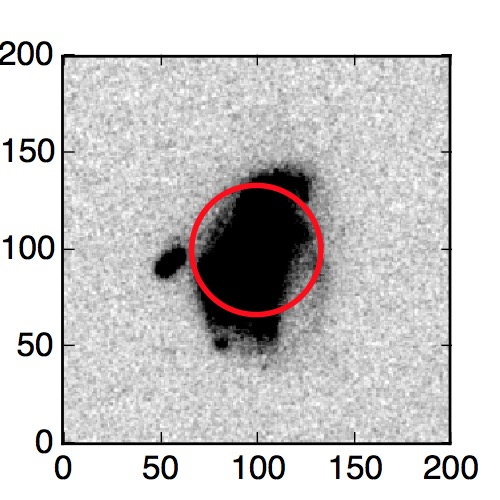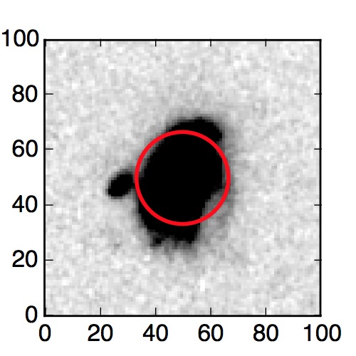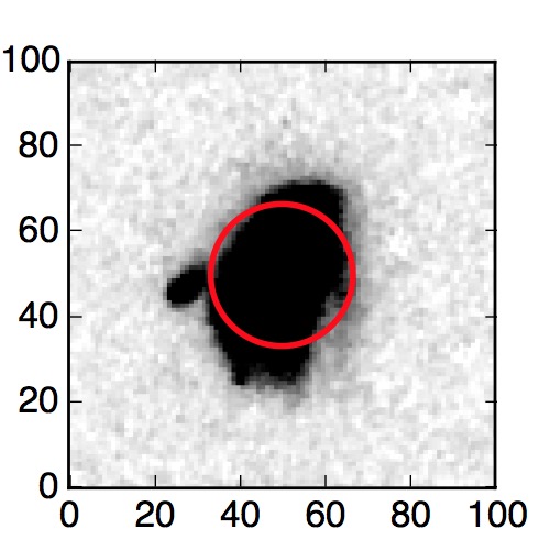 The red circle in the various panels is 1" in radius. The images are 6"x6".