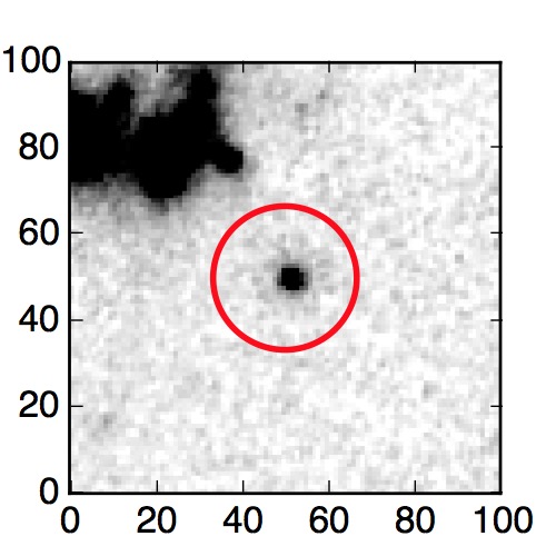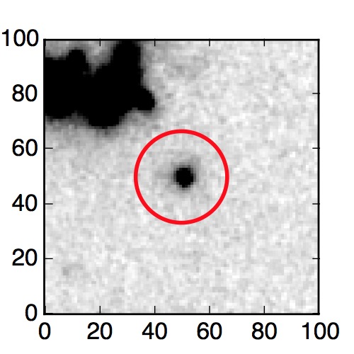 The red circle in the various panels is 1" in radius. The images are 6"x6".