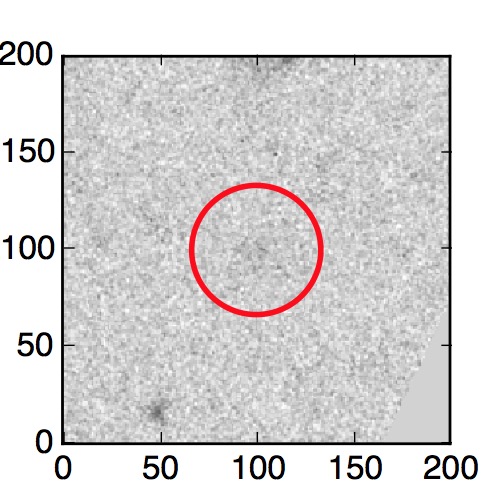 The red circle in the various panels is 1" in radius. The images are 6"x6".
