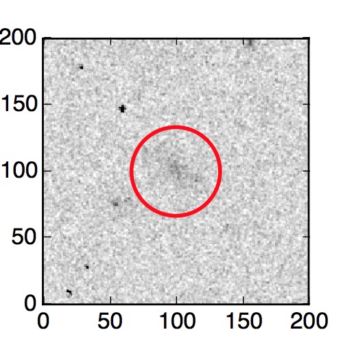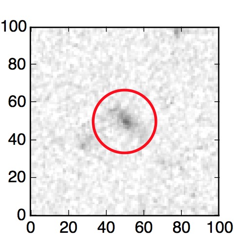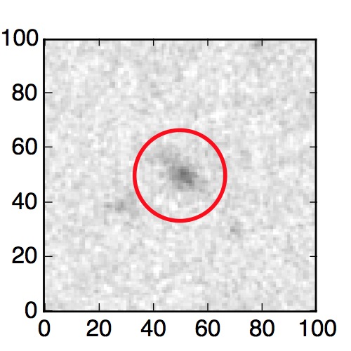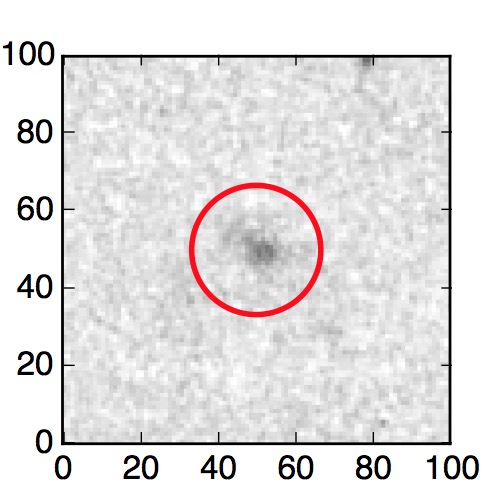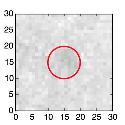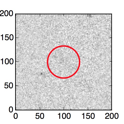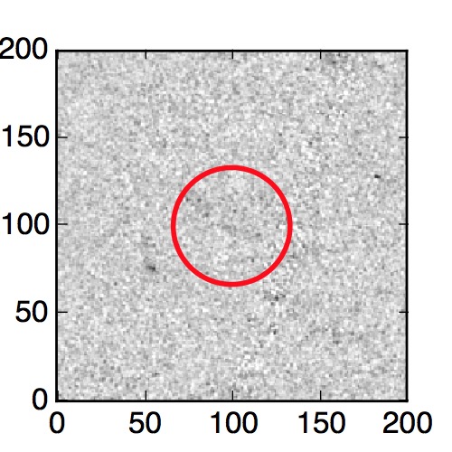 The red circle in the various panels is 1" in radius. The images are 6"x6".