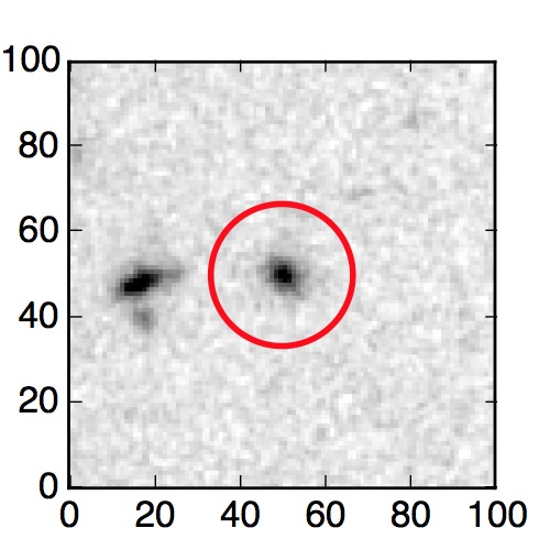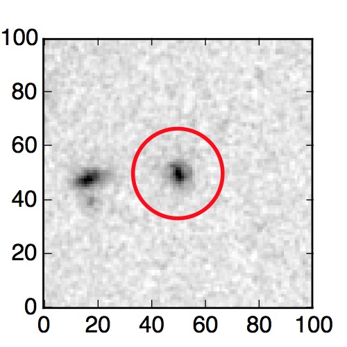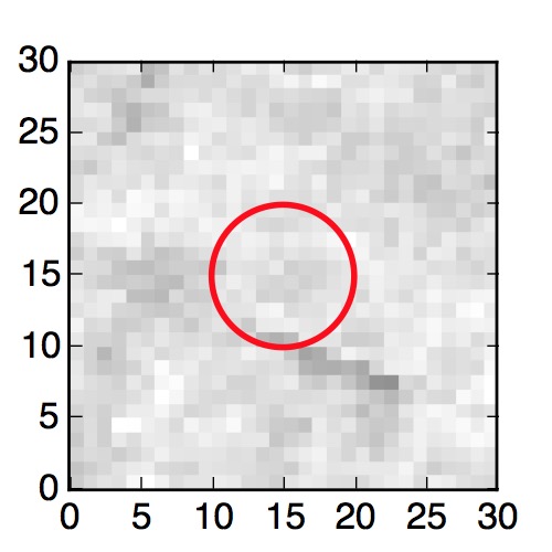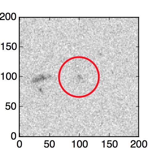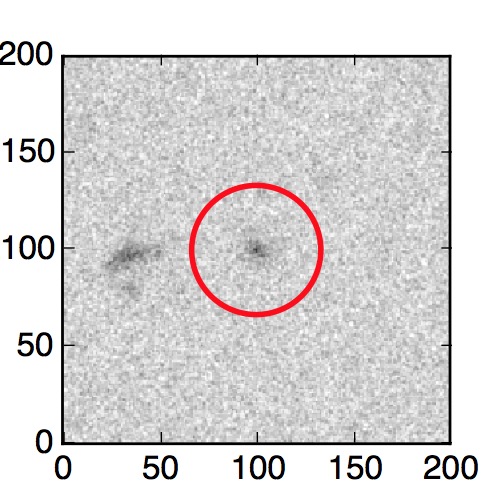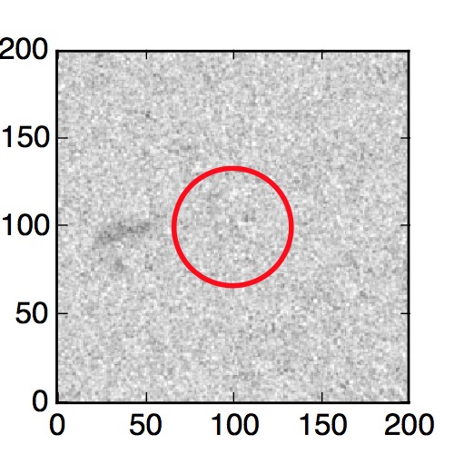 The red circle in the various panels is 1" in radius. The images are 6"x6".