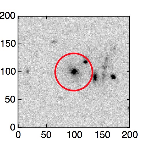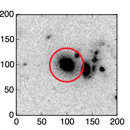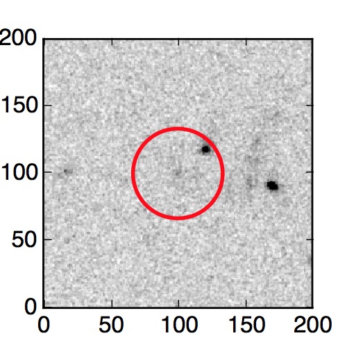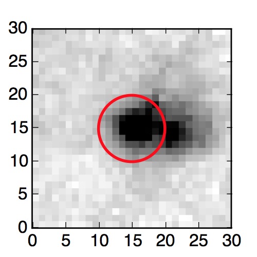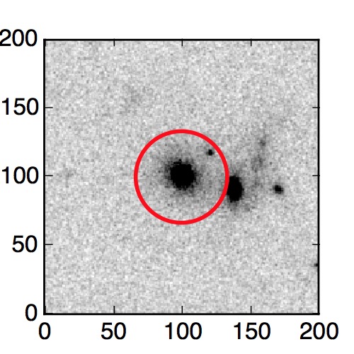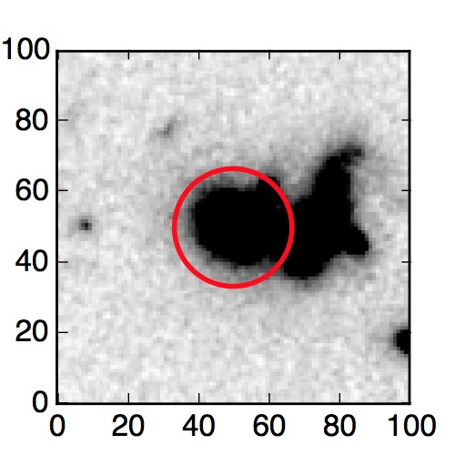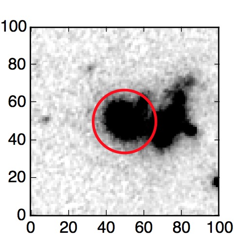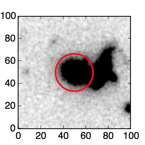 The red circle in the various panels is 1" in radius. The images are 6"x6".
