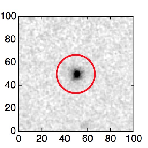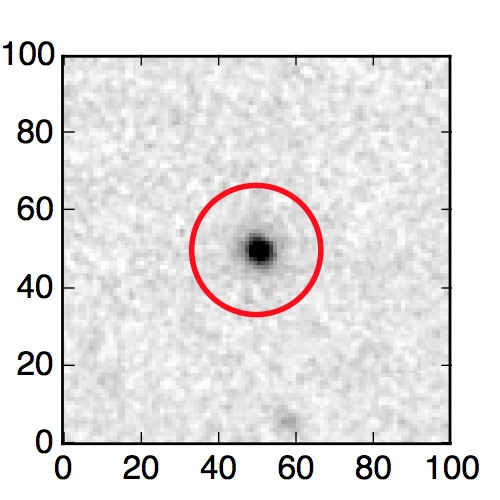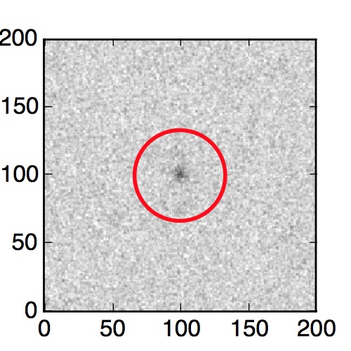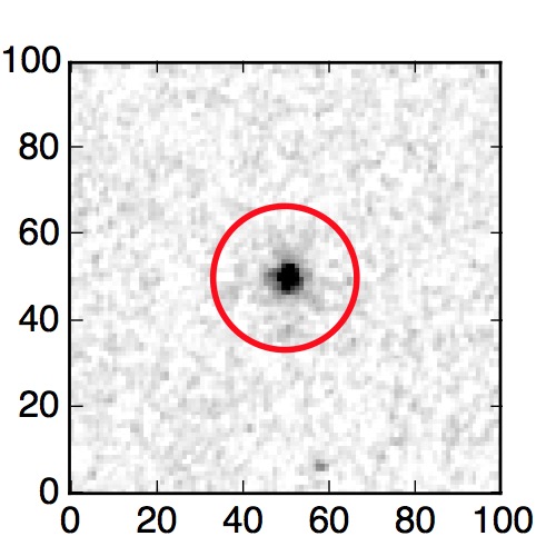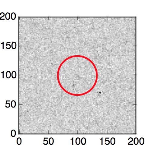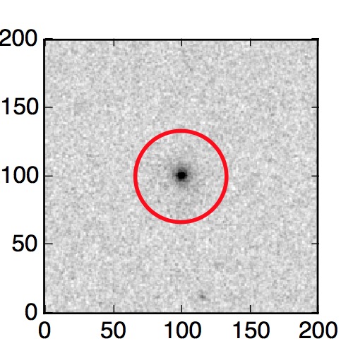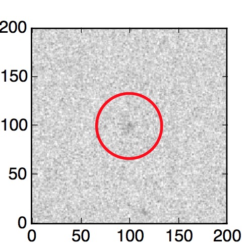 The red circle in the various panels is 1" in radius. The images are 6"x6".