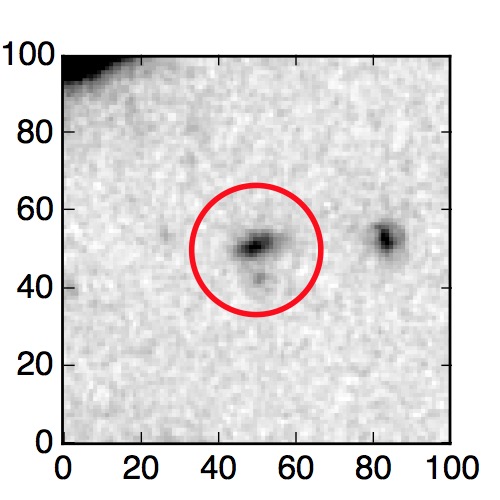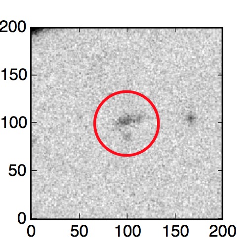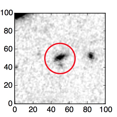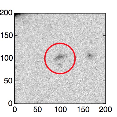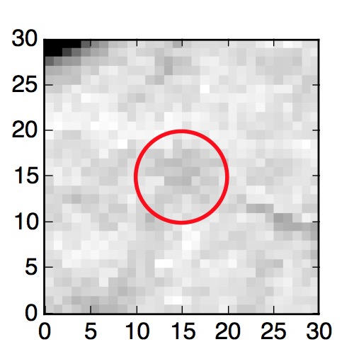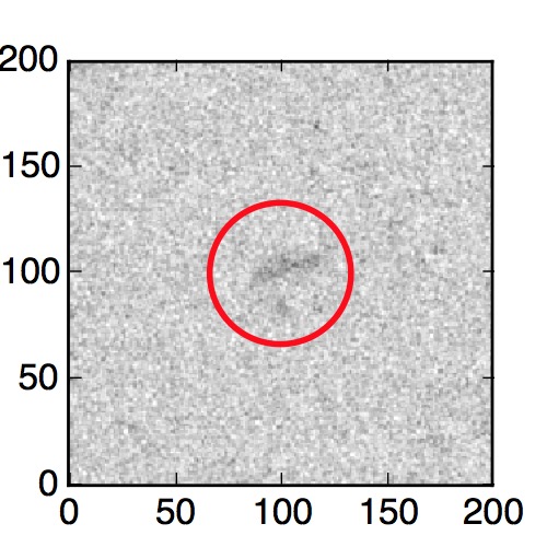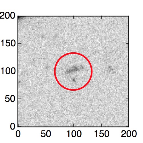 The red circle in the various panels is 1" in radius. The images are 6"x6".