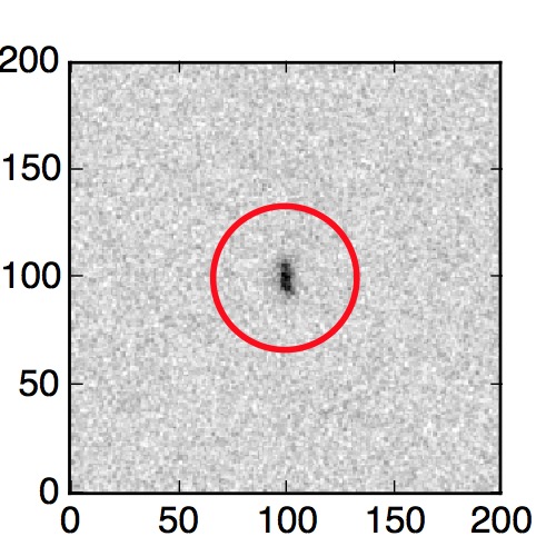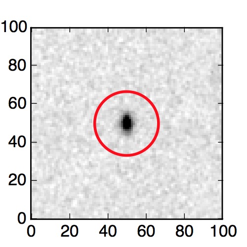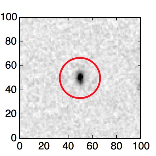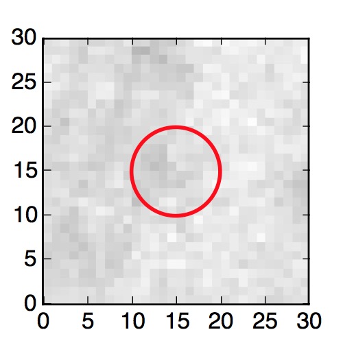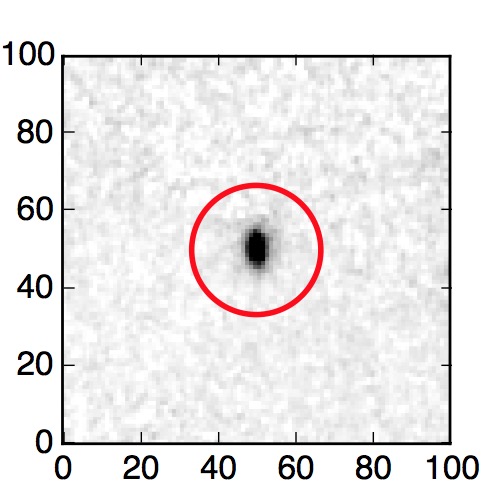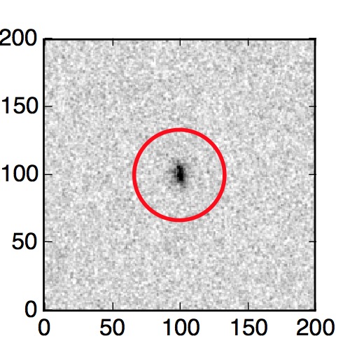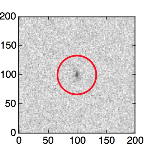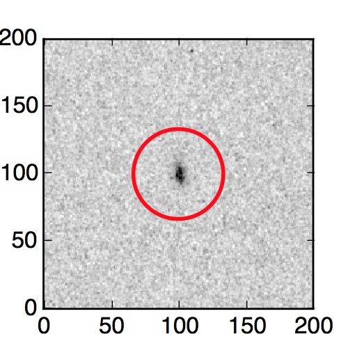 The red circle in the various panels is 1" in radius. The images are 6"x6".