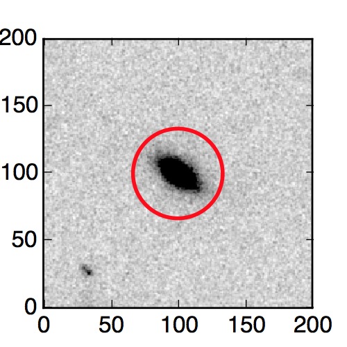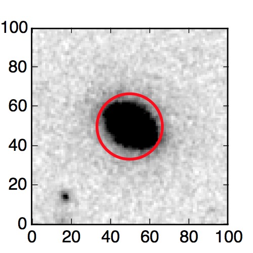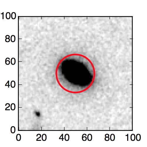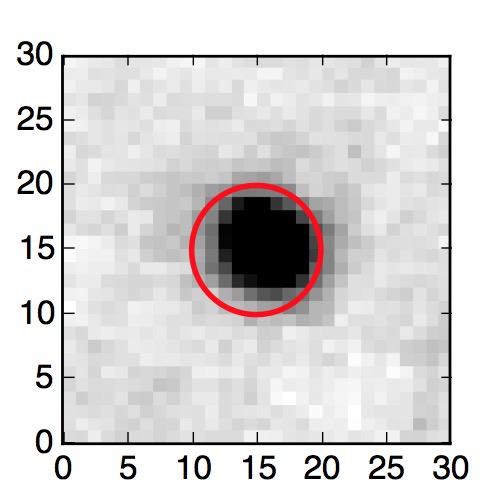 The red circle in the various panels is 1" in radius. The images are 6"x6".