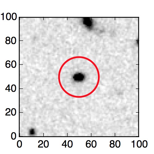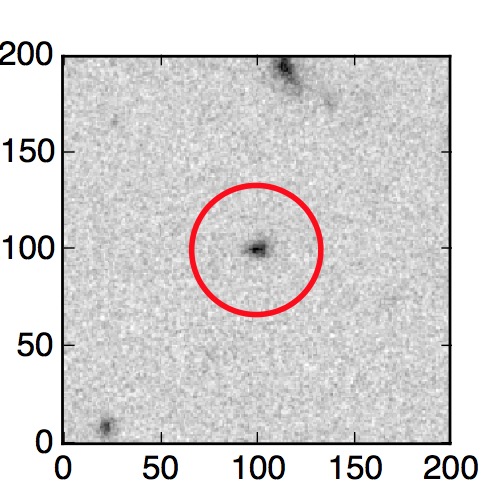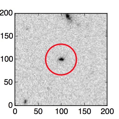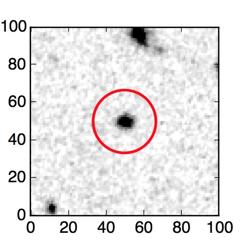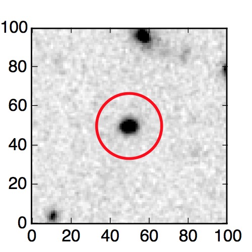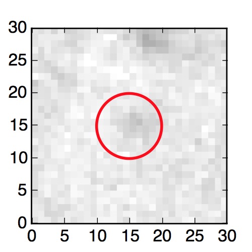 The red circle in the various panels is 1" in radius. The images are 6"x6".