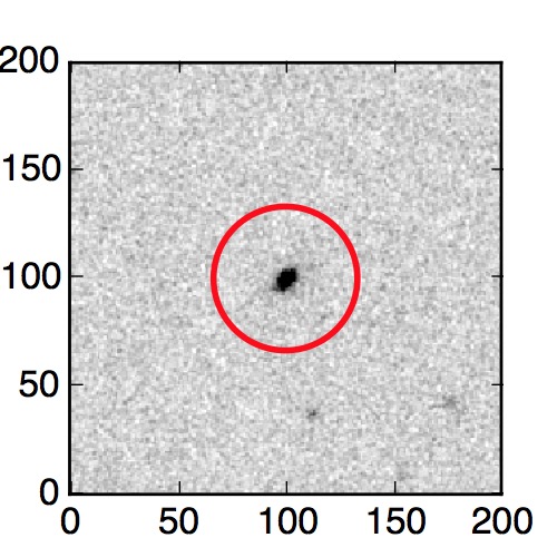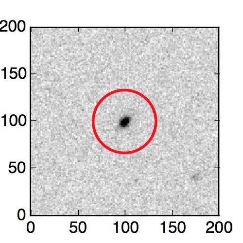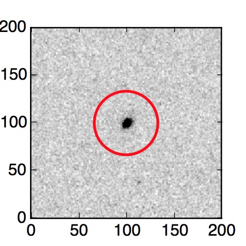 The red circle in the various panels is 1" in radius. The images are 6"x6".