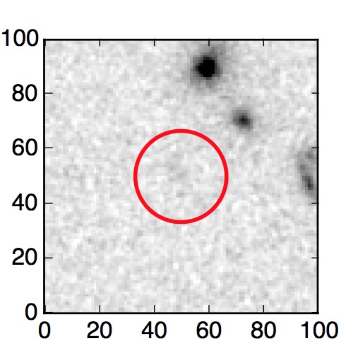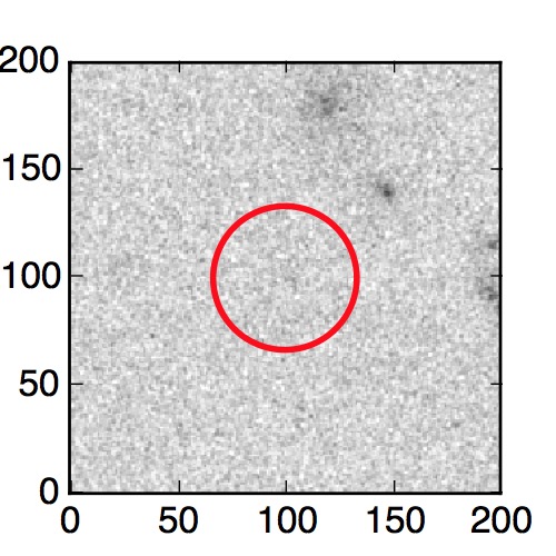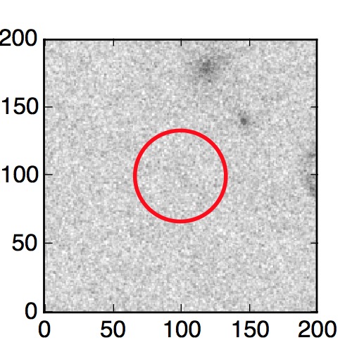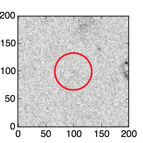 The red circle in the various panels is 1" in radius. The images are 6"x6".