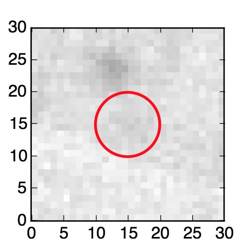 The red circle in the various panels is 1" in radius. The images are 6"x6".