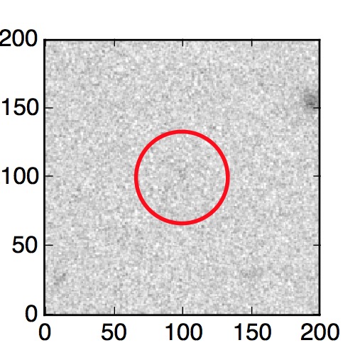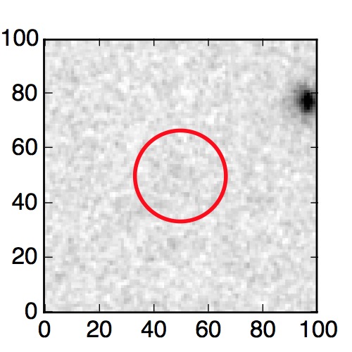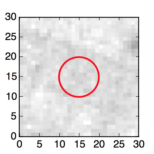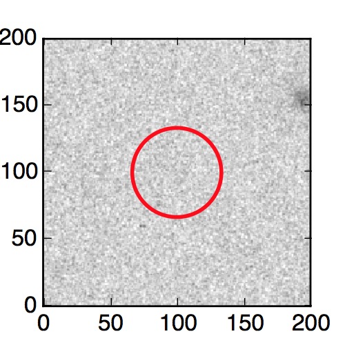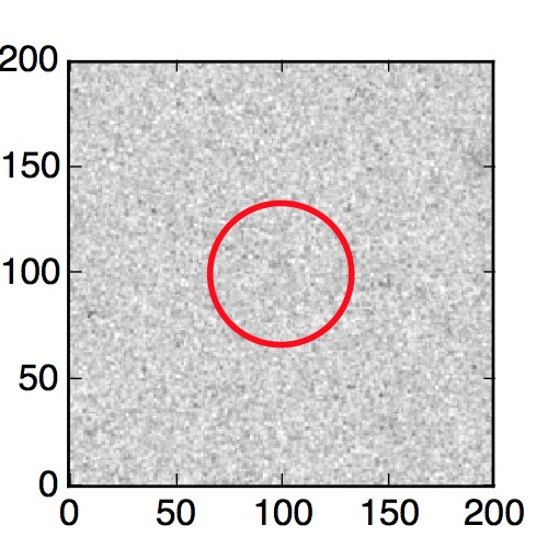 The red circle in the various panels is 1" in radius. The images are 6"x6".