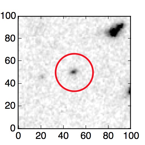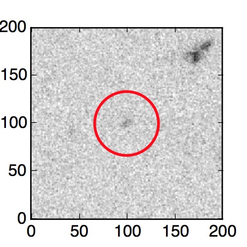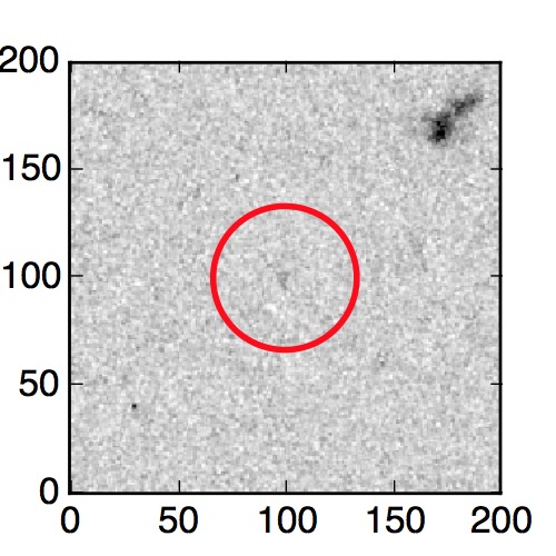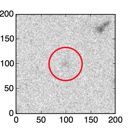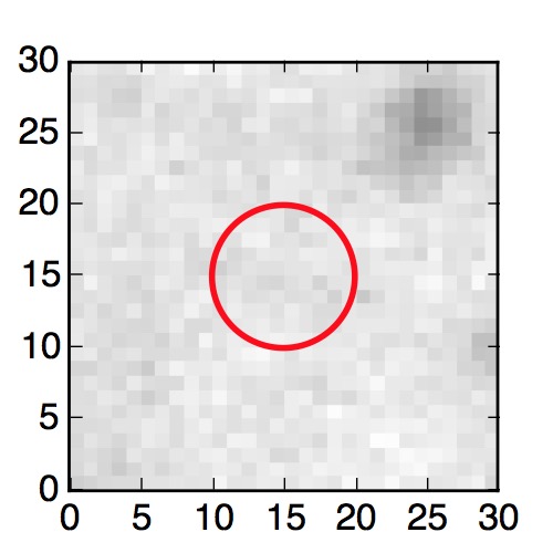 The red circle in the various panels is 1" in radius. The images are 6"x6".