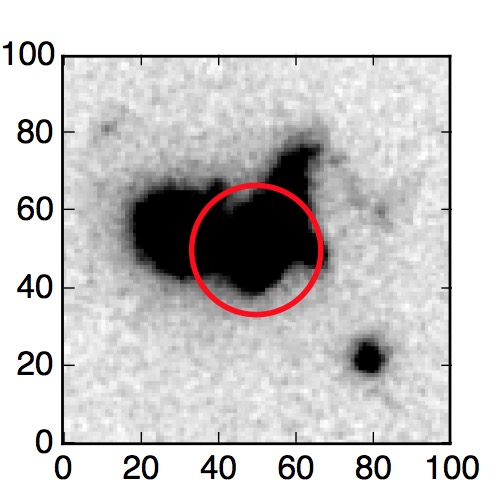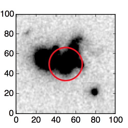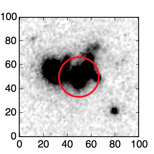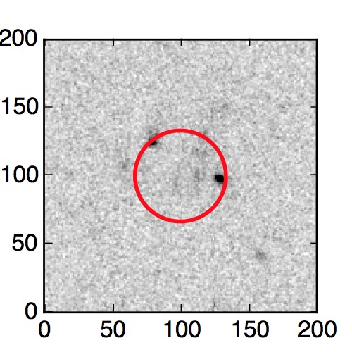 The red circle in the various panels is 1" in radius. The images are 6"x6".