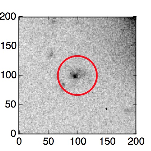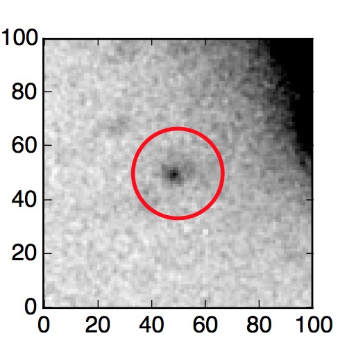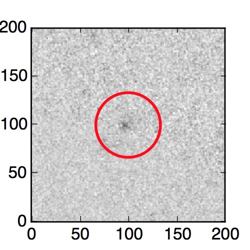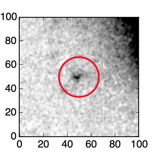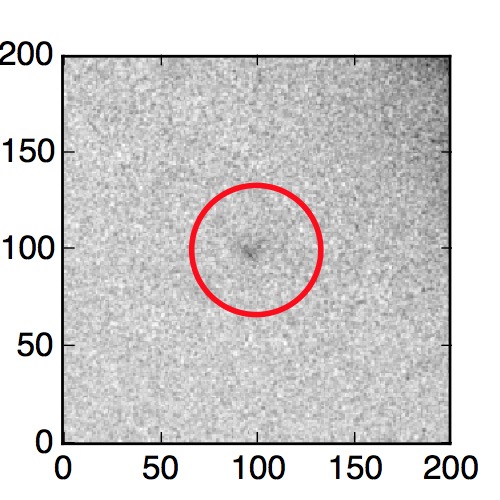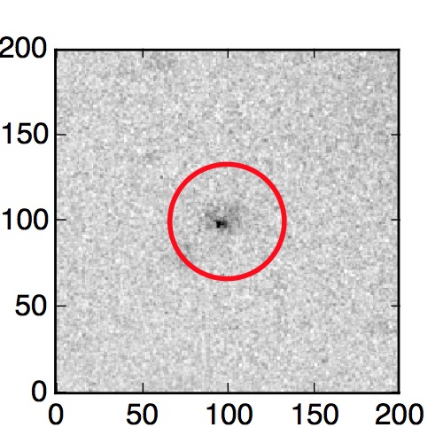 The red circle in the various panels is 1" in radius. The images are 6"x6".