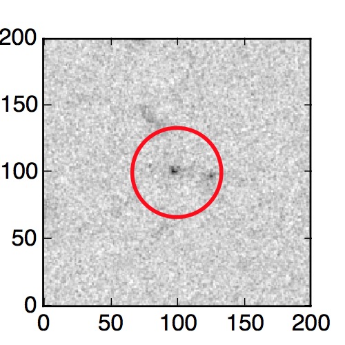 The red circle in the various panels is 1" in radius. The images are 6"x6".