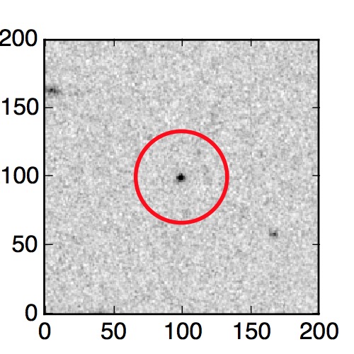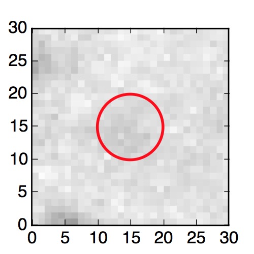 The red circle in the various panels is 1" in radius. The images are 6"x6".
