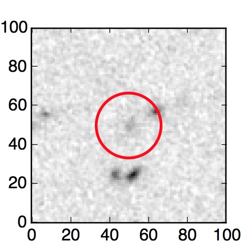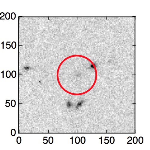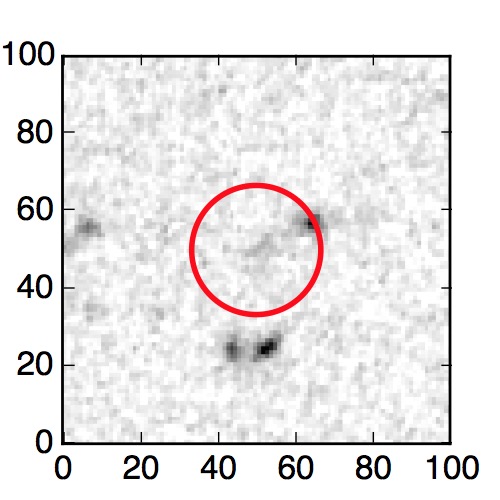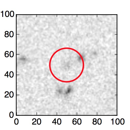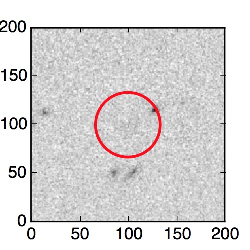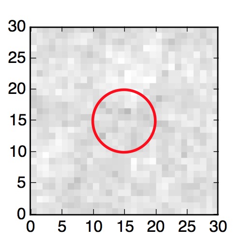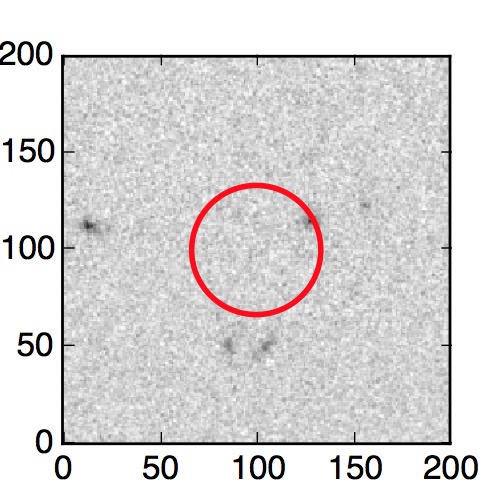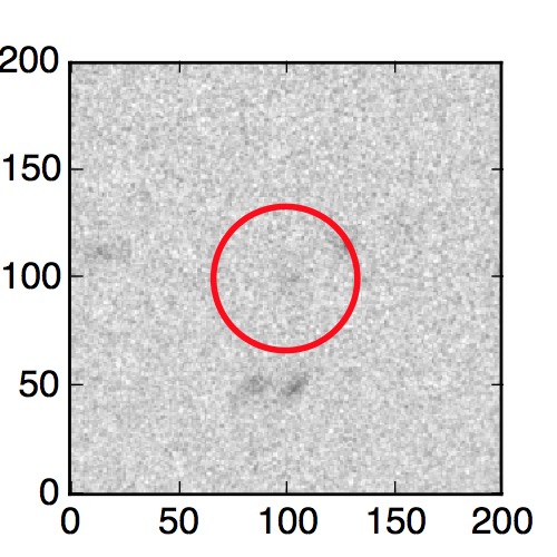 The red circle in the various panels is 1" in radius. The images are 6"x6".