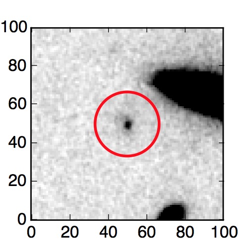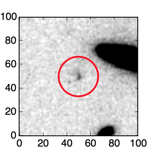 The red circle in the various panels is 1" in radius. The images are 6"x6".