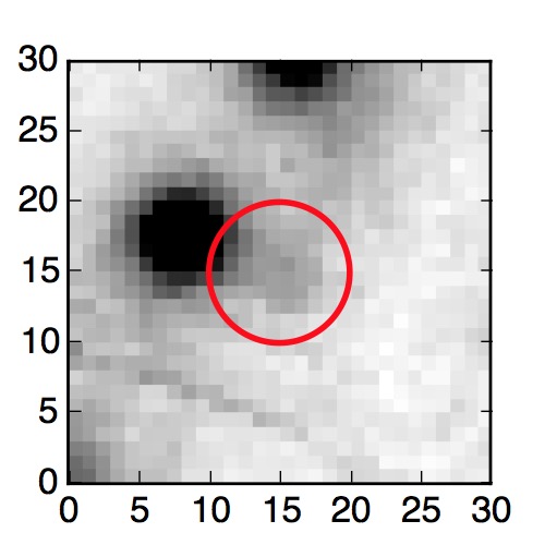 The red circle in the various panels is 1" in radius. The images are 6"x6".