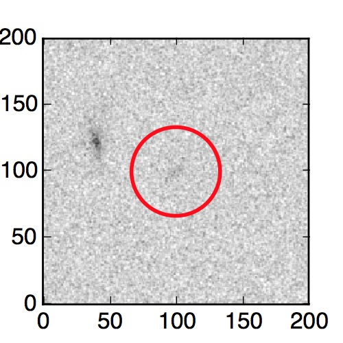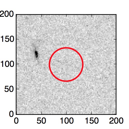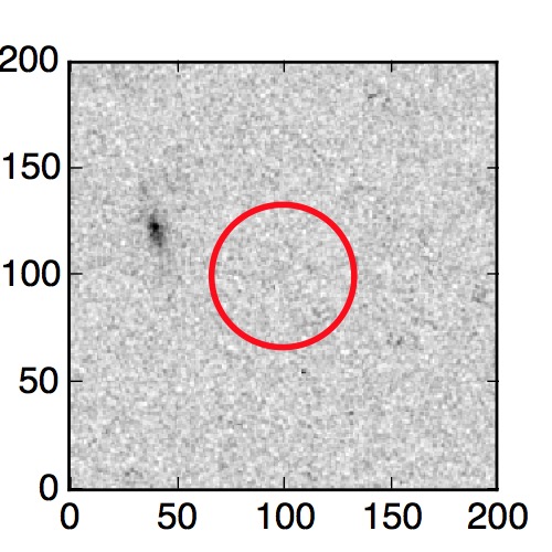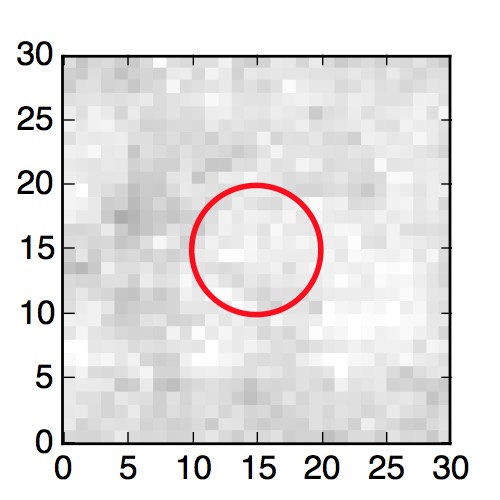 The red circle in the various panels is 1" in radius. The images are 6"x6".