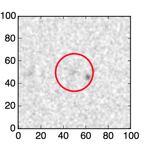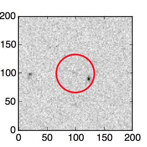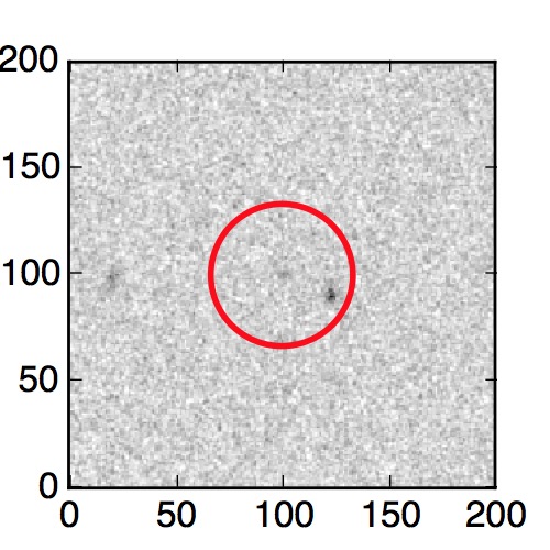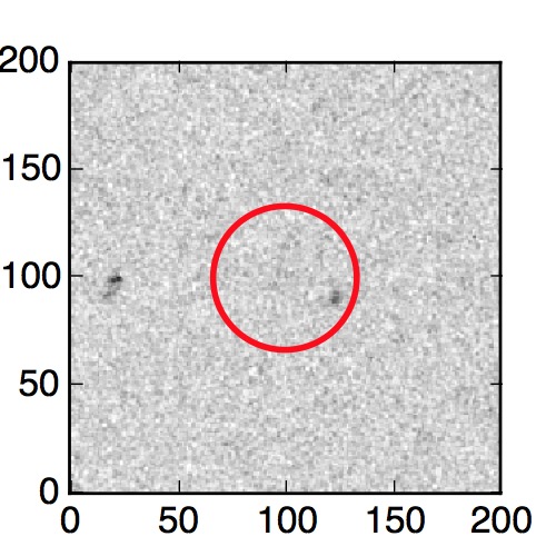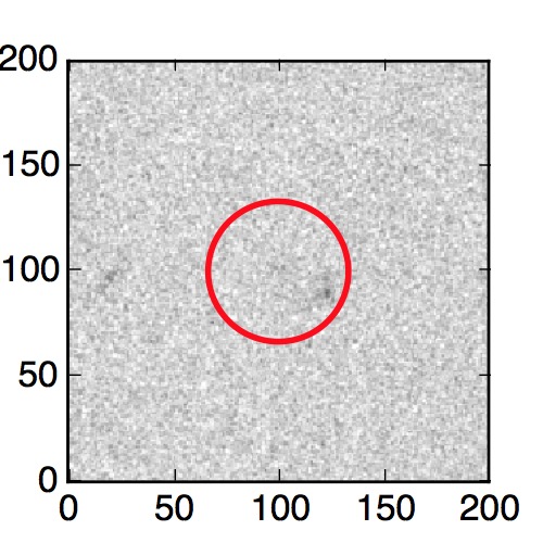 The red circle in the various panels is 1" in radius. The images are 6"x6".