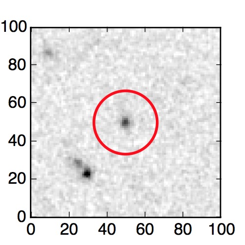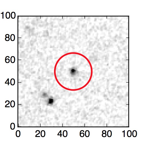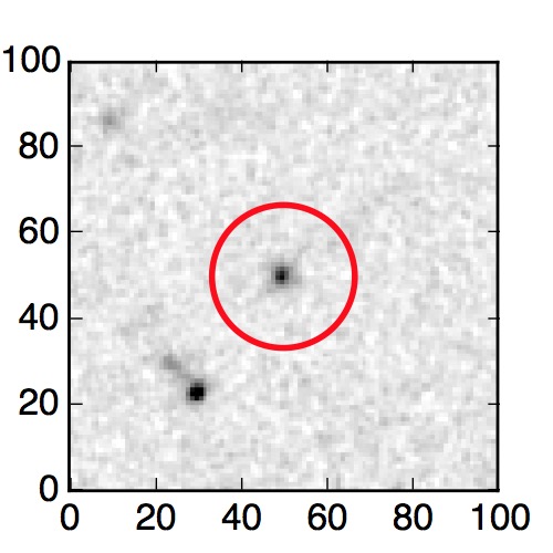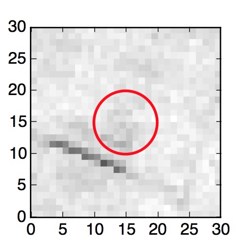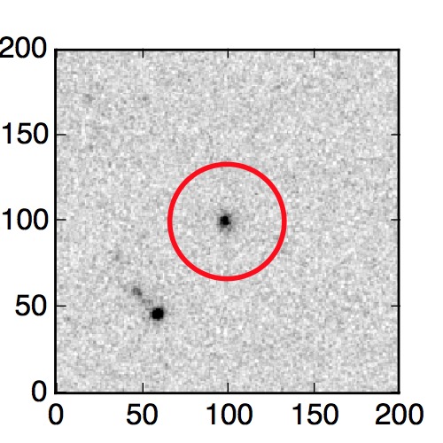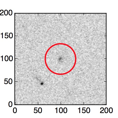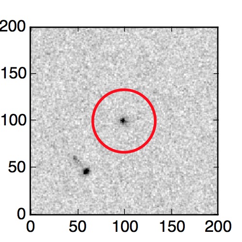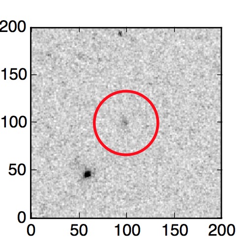The red circle in the various panels is 1" in radius. The images are 6"x6".