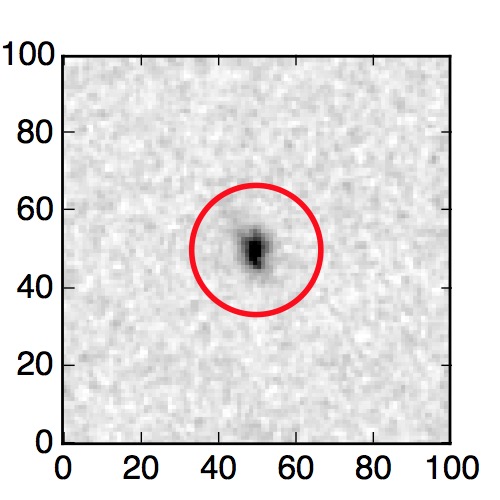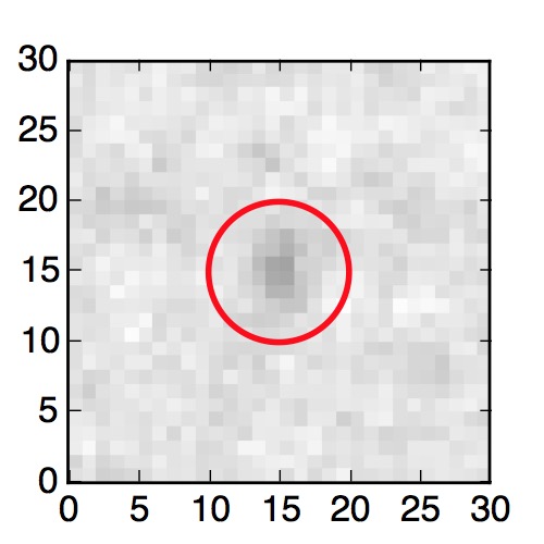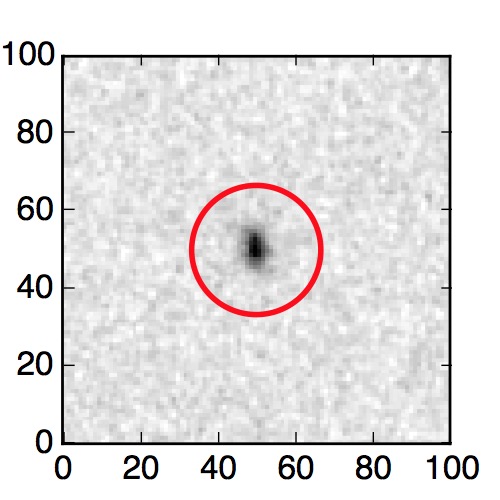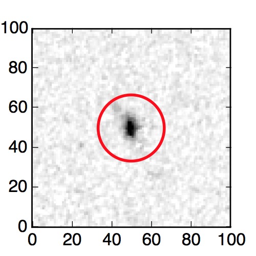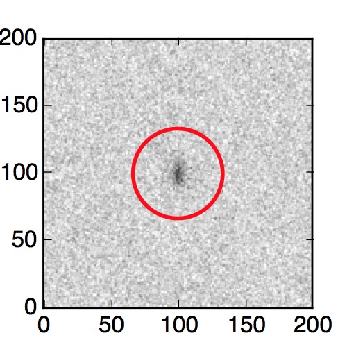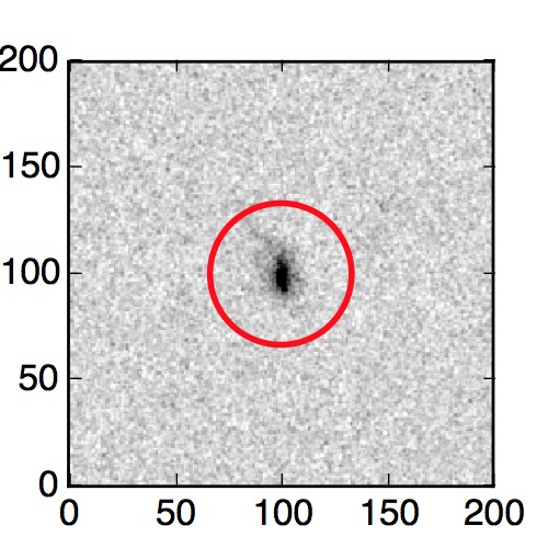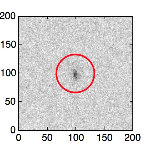 The red circle in the various panels is 1" in radius. The images are 6"x6".