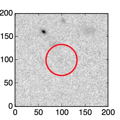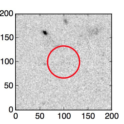 The red circle in the various panels is 1" in radius. The images are 6"x6".