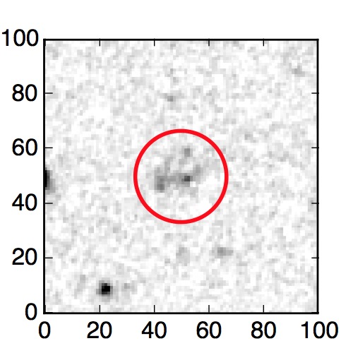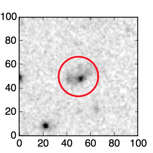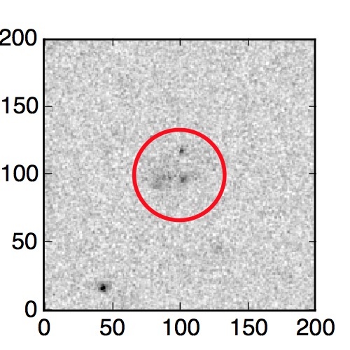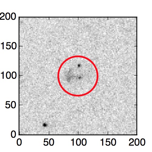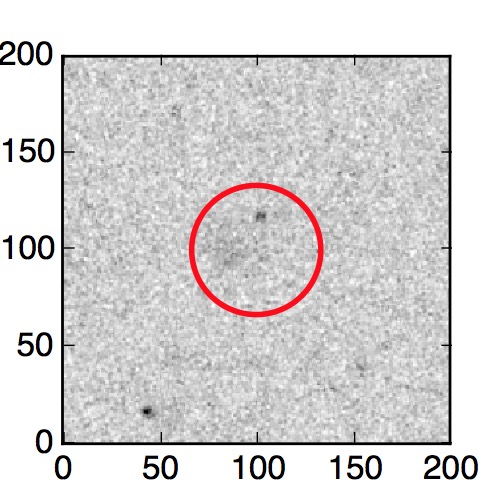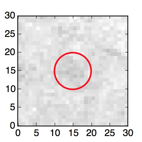 The red circle in the various panels is 1" in radius. The images are 6"x6".