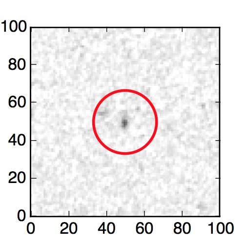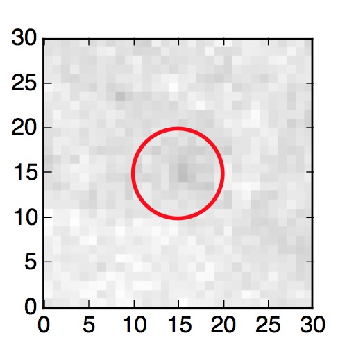 The red circle in the various panels is 1" in radius. The images are 6"x6".